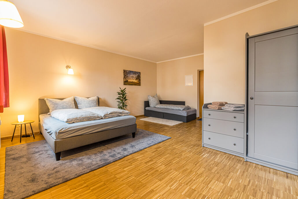 Alle Wohnungen verfügen über ein eigenes Bad, einen Fernseher und nagelneue Boxspringbetten.